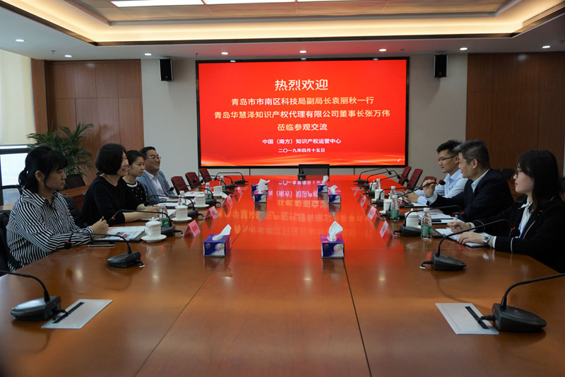 2019年4月15日,青島市市南區(qū)科技局副局長(zhǎng)袁麗秋一行到中國(guó)(南方)知識(shí)產(chǎn)權(quán)運(yùn)營(yíng)中心參觀調(diào)研,并與南方中心張衛(wèi)光副總裁等座談交流,青島華慧澤知識(shí)產(chǎn)權(quán)代理有限公司董事長(zhǎng)張萬偉一同參加。