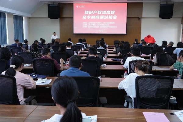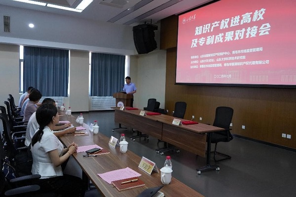 7月10日,由山東省國家知識產(chǎn)權(quán)保護(hù)中心、青島市市場監(jiān)督管理局指導(dǎo),山東大學(xué)(青島)、山東大學(xué)科學(xué)技術(shù)研究院主辦,青島市即墨區(qū)市場監(jiān)督管理局、青島華慧澤知識產(chǎn)權(quán)代理有限公司協(xié)辦的“知識產(chǎn)權(quán)進(jìn)高校暨專利成果對接會”在山東大學(xué)青島校區(qū)成功舉辦。會前,山東大學(xué)校長李術(shù)才與青島市市場監(jiān)督管理局局長張?jiān)佈銜妫H切交談。青島校區(qū)黨工委副書記宋作標(biāo)致歡迎辭,青島市市場監(jiān)督管理局局長張?jiān)佈恪⑸綎|省國家知識產(chǎn)權(quán)保護(hù)中心副主任尹強(qiáng)民出席活動并致辭。青島市市場監(jiān)督管理局知識產(chǎn)權(quán)促進(jìn)處處長欒華、知識產(chǎn)權(quán)保護(hù)處副處長安鍇,國家知識產(chǎn)權(quán)局戰(zhàn)略規(guī)劃司二級主任科員蘇強(qiáng),山東省國家知識產(chǎn)權(quán)保護(hù)中心預(yù)審一部部長牟若楠,青島市即墨區(qū)市場監(jiān)督管理局副局長刁艷艷、知識產(chǎn)權(quán)科科長喬杰先,青島華慧澤知識產(chǎn)權(quán)代理有限公司董事長張萬偉出席,青島校區(qū)科研管理辦公室副主任兼科學(xué)技術(shù)研究院副院長王志寧主持活動。山東大學(xué)科學(xué)技術(shù)研究院、技術(shù)轉(zhuǎn)移中心、青島校區(qū)科研管理辦公室負(fù)責(zé)人及相關(guān)人員,部分學(xué)院領(lǐng)導(dǎo)及專家代表,創(chuàng)新型企業(yè)負(fù)責(zé)人,共80余人參加活動。