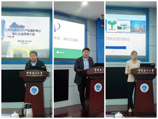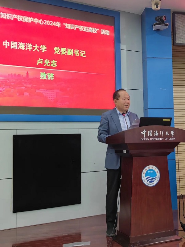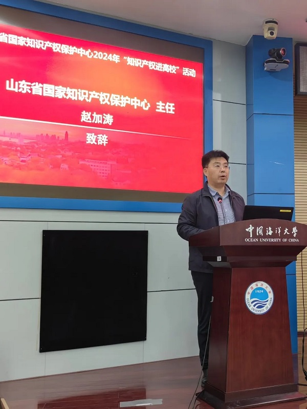 4月25日,宣傳周主題活動——山東省國家知識產(chǎn)權(quán)保護(hù)中心“知識產(chǎn)權(quán)進(jìn)高校”在嶗山校區(qū)成功舉辦。中國海洋大學(xué)黨委副書記盧光志,山東省國家知識產(chǎn)權(quán)保護(hù)中心黨總支書記、主任趙加濤出席活動并致辭。青島市知識產(chǎn)權(quán)保護(hù)中心主任郭大鵬、青島市市場監(jiān)督管理局知識產(chǎn)權(quán)運(yùn)用促進(jìn)處處長欒華、國家級知識產(chǎn)權(quán)保護(hù)中心(青島)建設(shè)工作領(lǐng)導(dǎo)小組辦公室執(zhí)行副主任鄭昆、嶗山區(qū)市場監(jiān)督管理局副局長李燕妮、國家知識產(chǎn)權(quán)局戰(zhàn)略規(guī)劃司蘇強(qiáng)、中國海洋大學(xué)圖書館館長谷強(qiáng)、青島華慧澤知識產(chǎn)權(quán)代理有限公司董事長張萬偉出席,校學(xué)術(shù)委員會辦公室副主任褚嘉杰主持活動。