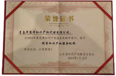 為進一步加強行業(yè)自律,規(guī)范和提升知識產(chǎn)權(quán)服務(wù)行業(yè)水平,營造爭先創(chuàng)優(yōu)的良好環(huán)境,促進知識產(chǎn)權(quán)服務(wù)業(yè)高質(zhì)量發(fā)展,山東省知識產(chǎn)權(quán)服務(wù)業(yè)協(xié)會經(jīng)過材料初審、專家評審等程序,對評選出的“優(yōu)秀知識產(chǎn)權(quán)服務(wù)機構(gòu)”進行了表彰。華慧澤公司憑借穩(wěn)定的綜合實力、專業(yè)的服務(wù)獲得業(yè)界的廣泛認可,獲此殊榮。